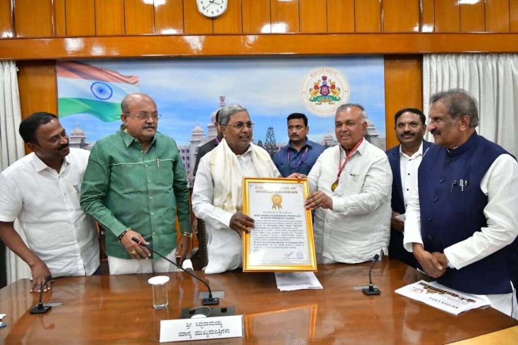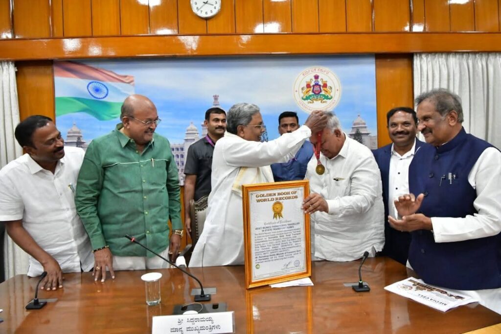 ಬುಕ್ ಆಫ್ ವರ್ಲ್ಡ್ ರೆಕಾರ್ಡ್ಸ್ ನಲ್ಲಿ ದಾಖಲಾಗಿ ಇತಿಹಾಸ ನಿರ್ಮಿಸಿತ್ತು.ಇಂದು ಆ ವಿಶ್ವ ದಾಖಲೆಯ ಪ್ರಮಾಣ ಪತ್ರವನ್ನು ಸಾರಿಗೆ ಸಚಿವರಾದ ರಾಮಲಿಂಗಾರೆಡ್ಡಿ ಅವರು ಮುಖ್ಯಮಂತ್ರಿ ಸಿದ್ದರಾಮಯ್ಯ ಅವರಿಗೆ ತೋರಿಸಿ, ಸಂತಸ ಹಂಚಿಕೊಂಡರು.