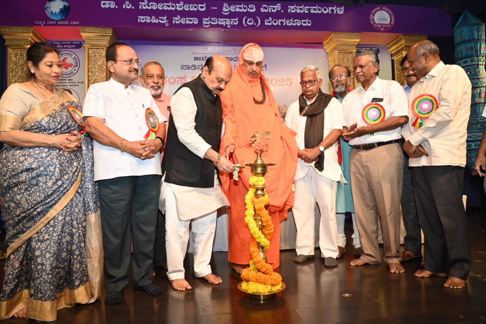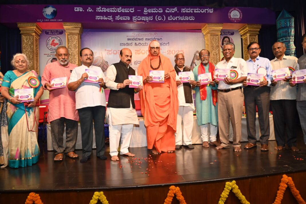 ಡಾ. ಸಿ.ಸೋಮಶೇಖರ ಶ್ರೀಮತಿ ಎನ್. ಸರ್ವಮಂಗಳ ಸಾಹಿತ್ಯ ಸೇವಾ ಪ್ರತಿಷ್ಠಾನ ವತಿಯಿಂದ ಬೆಂಗಳೂರಿನ ಗಾಂಧಿ ಭವನದಲ್ಲಿ ಏರ್ಪಡಿಸಿದ್ದ ಜೀವಮಾನ ಸಾಧನೆಗಾಗಿ ಹಿರಿಯ ಸಾಧಕರಿಗೆ ಸಂಸ್ಕೃತಿ ಸಂಗಮ 2025 ಪ್ರಶಸ್ತಿ ಪ್ರದಾನ ಕಾರ್ಯಕ್ರಮವನ್ನು ಮಾಜಿ ಮುಖ್ಯಮಂತ್ರಿ ಹಾಗೂ ಸಂಸದ ಬಸವರಾಜ ಬೊಮ್ಮಾಯಿ ಉದ್ಘಾಟಿಸಿದರು.