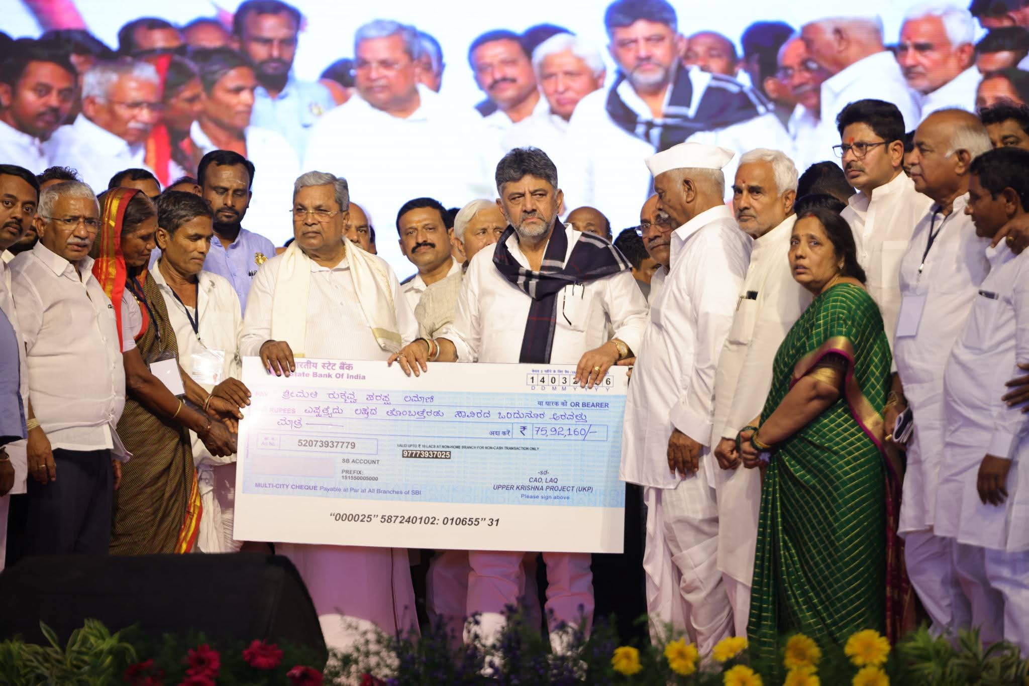 ಕೃಷ್ಣಾ ಮೇಲ್ದಂಡೆ ಯೋಜನೆ: ಸಂತ್ರಸ್ತರಿಗೆ ಪರಿಹಾರ ಚೆಕ್