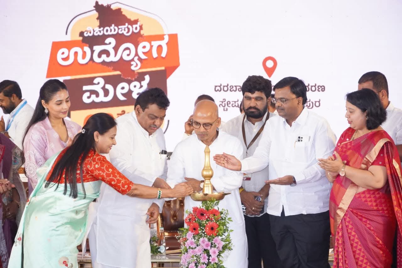 ಕರ್ನಾಟಕ ಕೌಶಲ್ಯಾಭಿವೃದ್ಧಿ ನಿಗಮ (KSIDC) ವತಿಯಿಂದ ವಿಜಯಪುರದ ದರ್ಬಾರ ಪ್ರೌಢಶಾಲೆಯ ಆವರಣದಲ್ಲಿ ಹಮ್ಮಿಕೊಳ್ಳಲಾಗಿರುವ ಬೃಹತ್ ಉದ್ಯೋಗ ಮೇಳವನ್ನು ಉದ್ಘಾಟಿಸಿ, ಉದ್ಯೋಗ ಅಪೇಕ್ಷಿಸಿ ಬಂದಿರುವ ಎಲ್ಲ ಯುವ ಜನತೆಗೆ ಶುಭಹಾರೈಸಿದೆ.