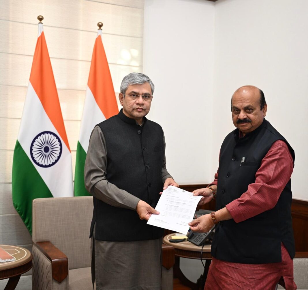 ಗದಗ-ಯಲವಿಗಿ ರೈಲ್ವೆ ಯೋಜನೆ ಶೀಘ್ರ ಆರಂಭಿಸಲು ಕೇಂದ್ರ ರೈಲ್ವೆ ಸಚಿವರಿಗೆ ಸಂಸದ ಬಸವರಾಜ ಬೊಮ್ಮಾಯಿ ಮನವಿ