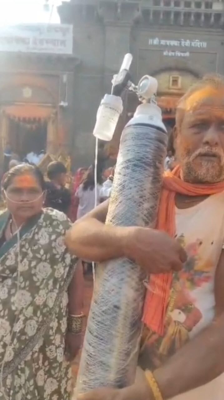 ಉಸಿರಾಟದ ಸಮಸ್ಯೆಯಿದ್ದರೂ ಕುಗ್ಗದ ಭಕ್ತಿ! ಆಕ್ಸಿಜನ್ ಸಿಲಿಂಡರ್ ಜೊತೆ ಚಿಂಚಲಿ ಮಾಯಕ್ಕನ ದರ್ಶನ ಪಡೆದ ದಂಪತಿ.